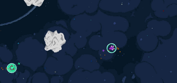 at tiny asteroids right in front of the player